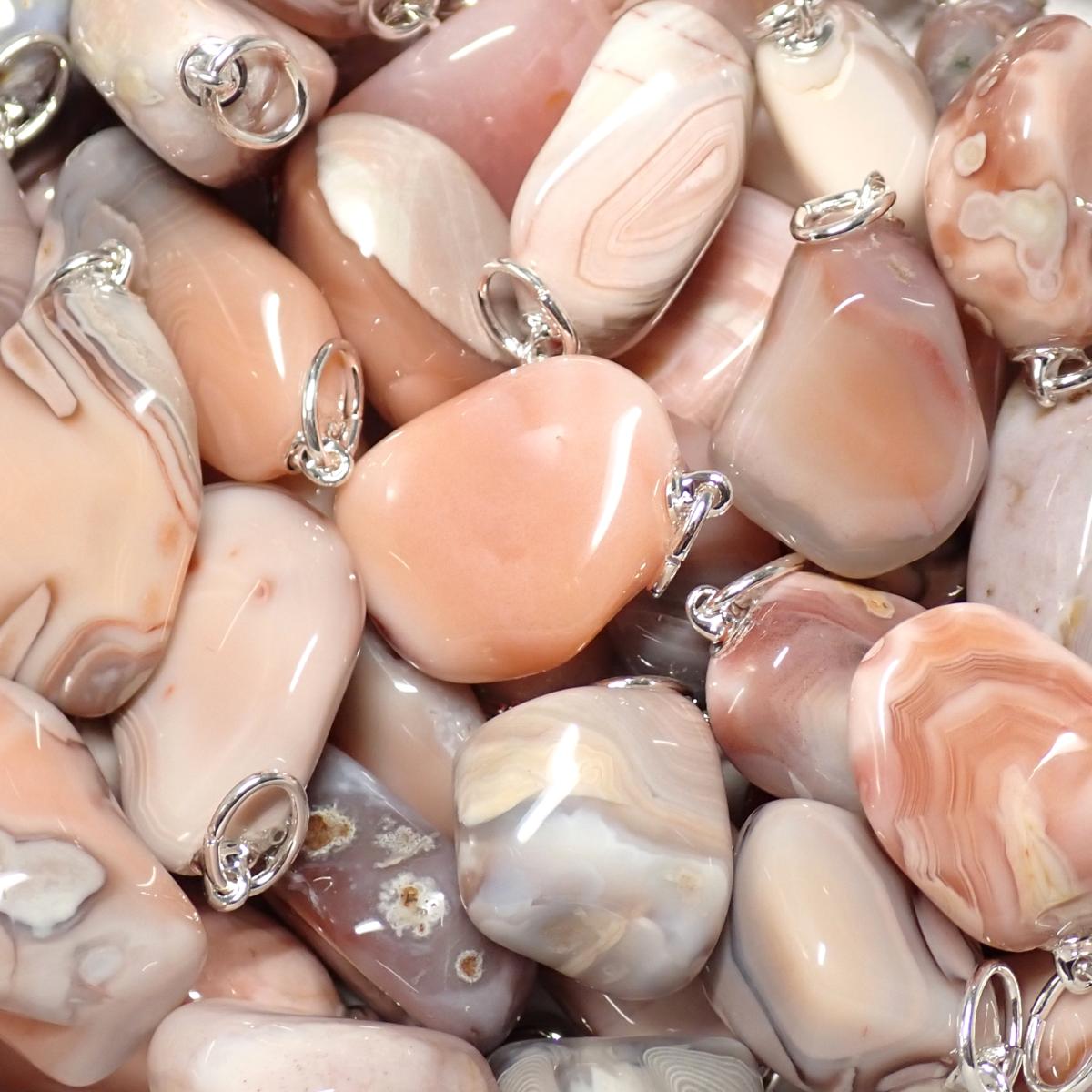 Agate Botswana Rose Pendentif pierre roulée par 20 pièces