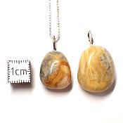 Cette variété jaune d'agate est associée aux soins du 3ème chakra, son action est très douce et positive l'esprit, pour renforcer son action, elle peut être combinée aux autres pierres de couleur jaune.
