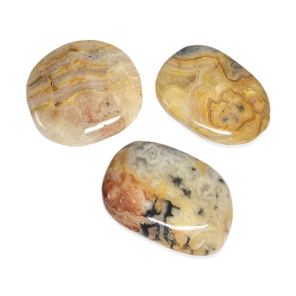 Cette variété jaune d'agate est associée aux soins du 3ème chakra, son action est très douce et positive l'esprit, pour renforcer son action, elle peut être combinée aux autres pierres de couleur jaune.