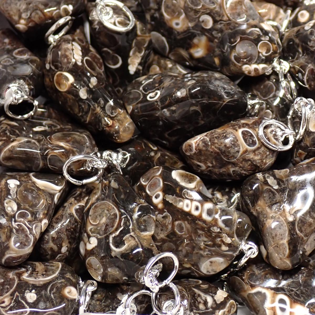 • Agate Fossile ou Turritelle - Pendentif pierre roulée (Lot de 10 pièces)
