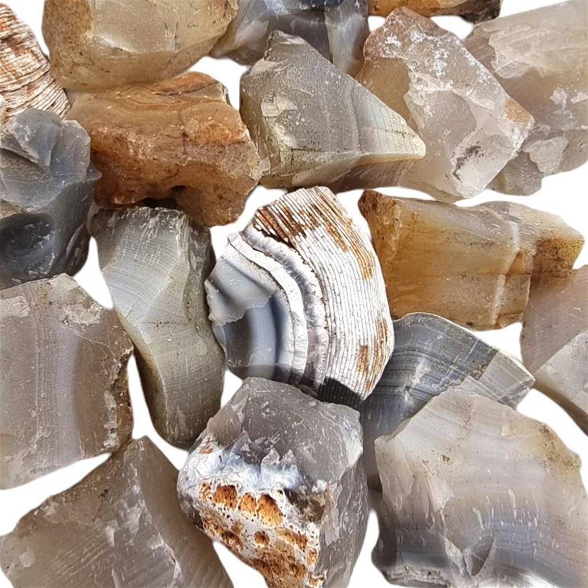 L'agate (SiO2) fait partie de la famille des calcédoines, qui sont à leur tour des variétés micro-cristallines de quartz. Elle est la gemme de la Terre, qui nous relie à sa force et à sa beauté. Son nom évoque un mot grec désignant "ce qui est beau et bon". L'agate représente la vie matérielle dans son aspect positif. Pierre d'ancrage, elle apporte stabilité. Son action étant lente, il convient de la porter pendant de longues périodes.