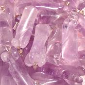 Le QUARTZ (Si O2), de la famille des oxydes, est l'un des minéraux les plus courants sur la Terre. L'améthyste est un quartz de couleur violette, dont l'intensité varie en fonction de la quantité de manganèse et de fer présents dans chaque gisement. La plus connue est celle du Brésil, de teinte soutenue et de belle transparence. L'améthyste est associée à la sérénité, à l'équilibre et à la tempérance. Sa vibration violette est source de purification, d'élévation vibratoire, de renouveau. L'améthyste incite à la méditation et renforce l'intuition. Elle est associée au chakra coronal, qu'elle active. Symbole de sagesse et de force, conformément à son étymologie (en grec ametusthos = qui n'est pas ivre) l'améthyste est censées combattre toutes les ivresses. Elle aide à nettoyer le mental et chasse les pensées obsessionnelles. Sa présence dans la chambre à coucher favorise un sommeil paisible après des activités intellectuelles intenses. L'améthyste n'a pas besoin de purification. Rechargement pendant la nouvelle lune.