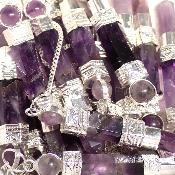 Le QUARTZ (Si O2), de la famille des oxydes, est l'un des minéraux les plus courants sur la Terre. L'améthyste est un quartz de couleur violette, dont l'intensité varie en fonction de la quantité de manganèse et de fer présents dans chaque gisement. La plus connue est celle du Brésil, de teinte soutenue et de belle transparence. L'améthyste est associée à la sérénité, à l'équilibre et à la tempérance. Sa vibration violette est source de purification, d'élévation vibratoire, de renouveau. L'améthyste incite à la méditation et renforce l'intuition. Elle est associée au chakra coronal, qu'elle active. Symbole de sagesse et de force, conformément à son étymologie (en grec ametusthos = qui n'est pas ivre) l'améthyste est censées combattre toutes les ivresses. Elle aide à nettoyer le mental et chasse les pensées obsessionnelles. Sa présence dans la chambre à coucher favorise un sommeil paisible après des activités intellectuelles intenses. L'améthyste n'a pas besoin de purification. Rechargement pendant la nouvelle lune.