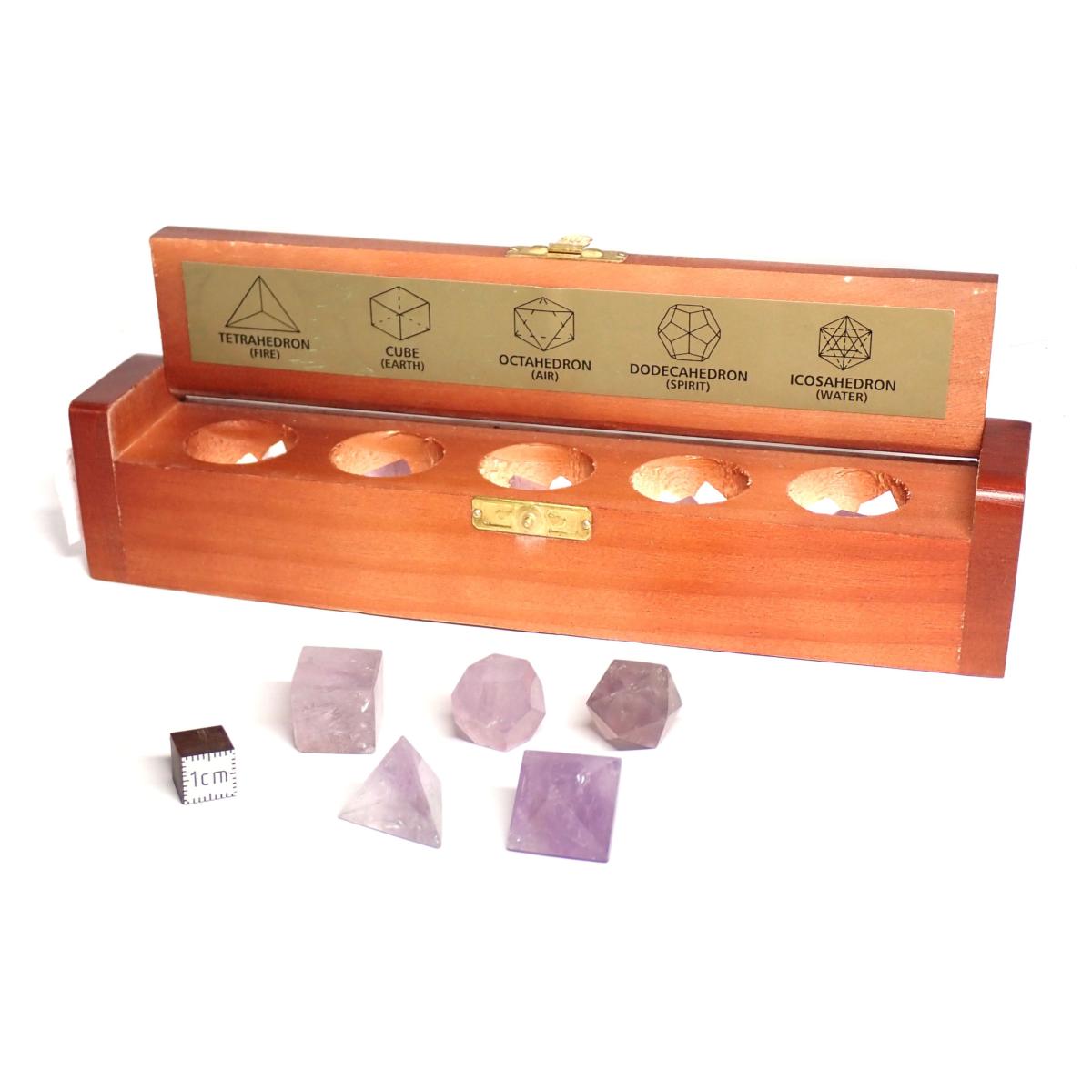 Boite en bois de Solide de Platon en Améthyste de 1.5 cm