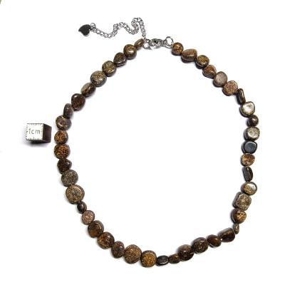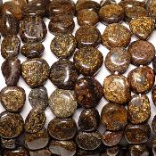 Silicate de fer et de magnésium, de la famille des pyroxènes (Na Fe Si2 O6). Même composition chimique que l'HYPERSTHENE, mais à la différence de celui-ci, les cristaux de la bronzite sont courts et irréguliers. Sur le 3ème chakra, plexus solaire elle rééquilibre en douceur cette zone ; sur le chakra du coeur elle nous inspire tendresse et bien-être.