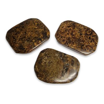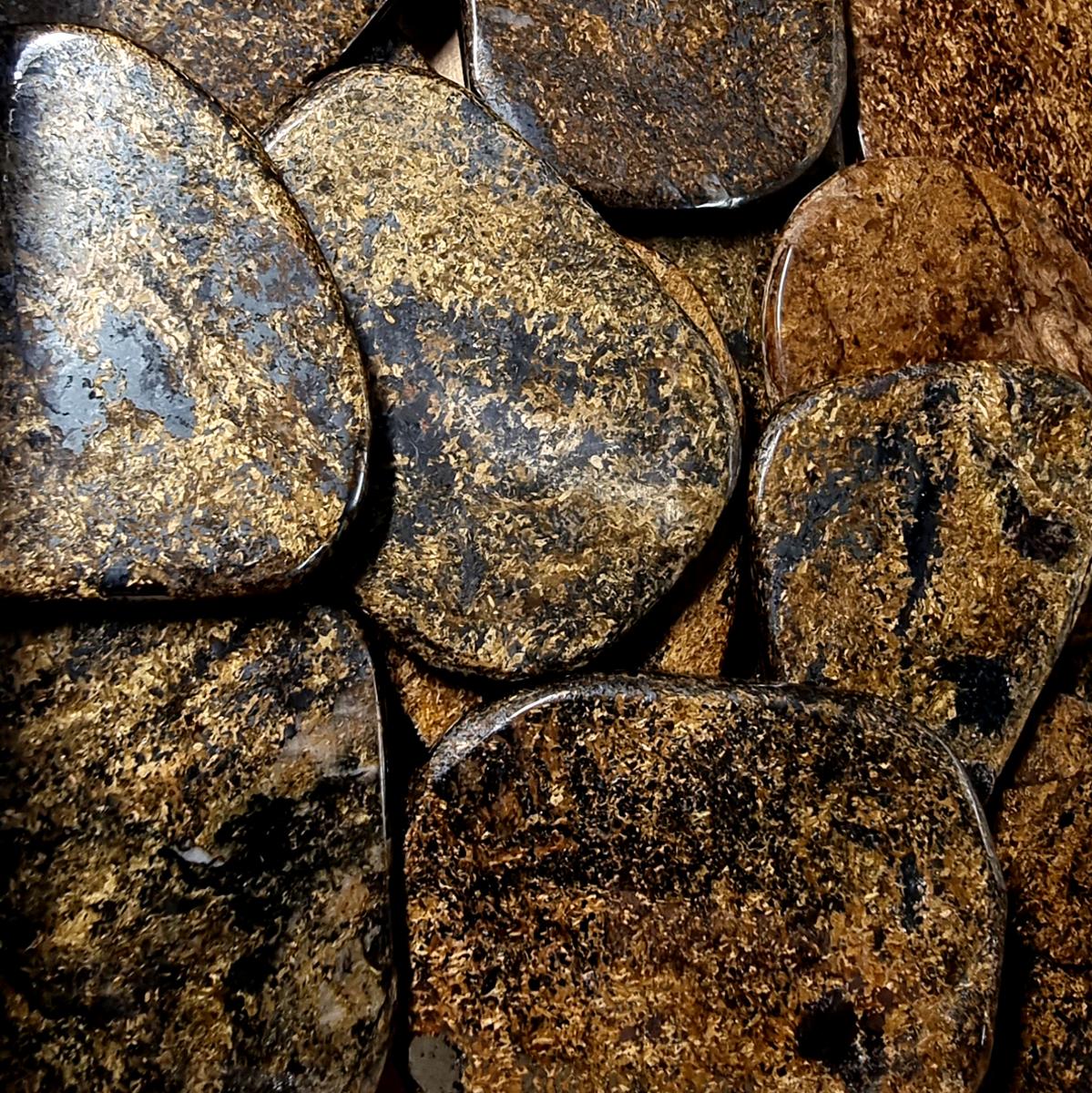 Silicate de fer et de magnésium, de la famille des pyroxènes (Na Fe Si2 O6). Même composition chimique que l'HYPERSTHENE, mais à la différence de celui-ci, les cristaux de la bronzite sont courts et irréguliers. Sur le 3ème chakra, plexus solaire elle rééquilibre en douceur cette zone; sur le chakra du cœur elle nous inspire tendresse et bien-être.