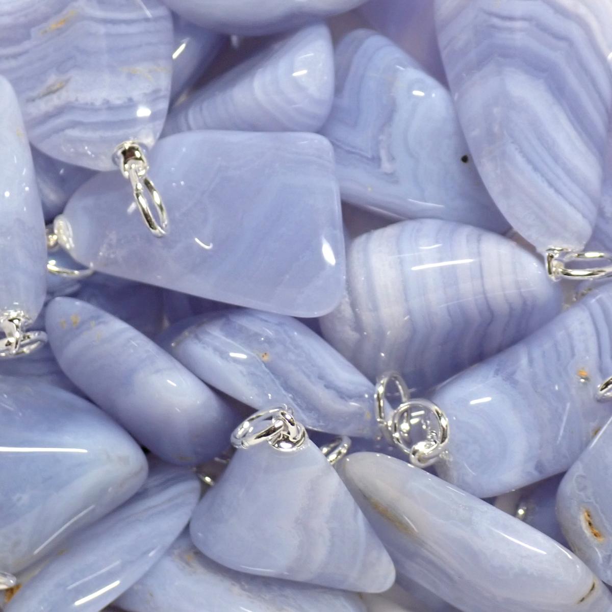 Calcédoine Bleue Pendentif pierre roulée par 10 pièces