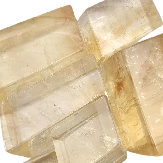 Carbonate de calcium. Ce minéral rayonne la joie et la douceur. La calcite miel stimule l'intellect et apporte stabilité et enracinement aux activités tant physiques que mentales.