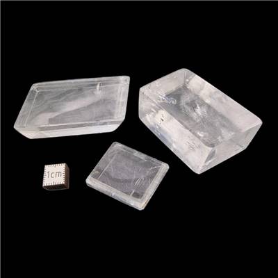 Carbonate de calcium (Ca CO3). Irisée, translucide. La calcite optique a la propriété de la réfraction double. Magifique pierre de pure lumière, elle aide à se clarifier, y voir plus clair et à nettoyer l'aura. En tant que pierre de lumière blanche, elle nous aide à débuter en douceur un travail d'ouverture du chakra coronal.