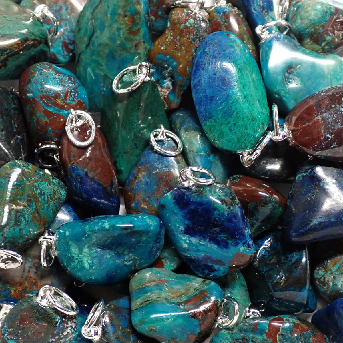 Chrysocolle "EE" - Pendentif pierre roulée (Lot de 10 pièces)