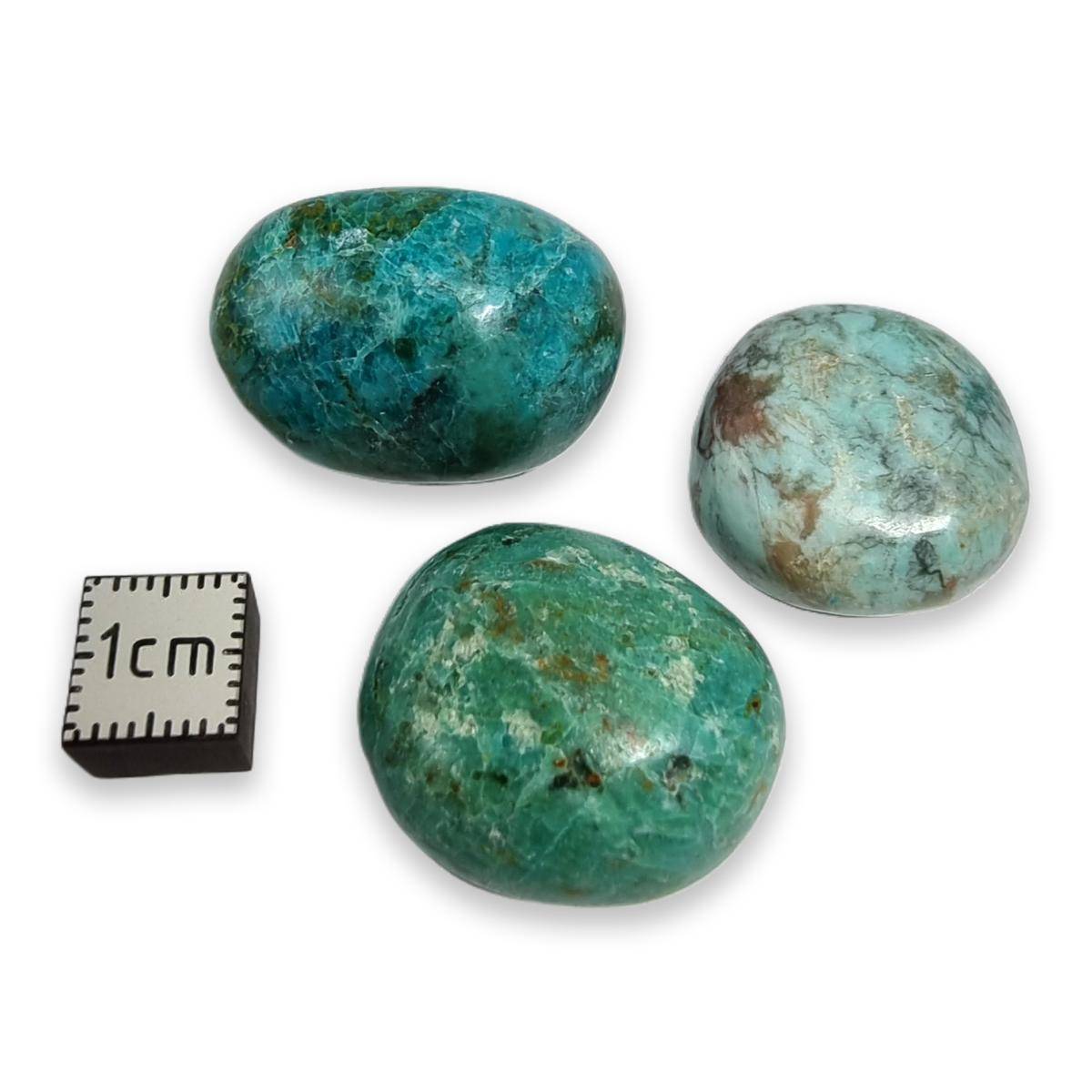 Silicate hydraté de cuivre, trouvé dans les zones d'oxydation des dépôts de cuivre. Énergie féminine, principe YIN. Propriétés calmantes, de détente et de repos. Équilibre et apaise tous les centres énergétiques. La chrysocolle repousse les énergies négatives en faisant régner l'harmonie relationnelle, le dialogue et la tolérance. Elle développe la créativité artistique en activant l'inspiration.