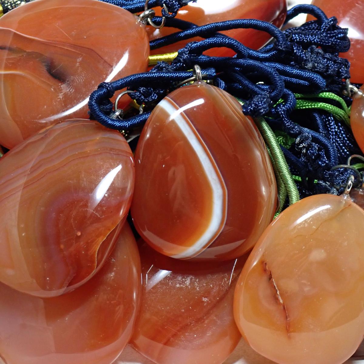 Cornaline avec cordon pendentif pierre plate par 10 pièces