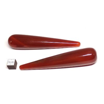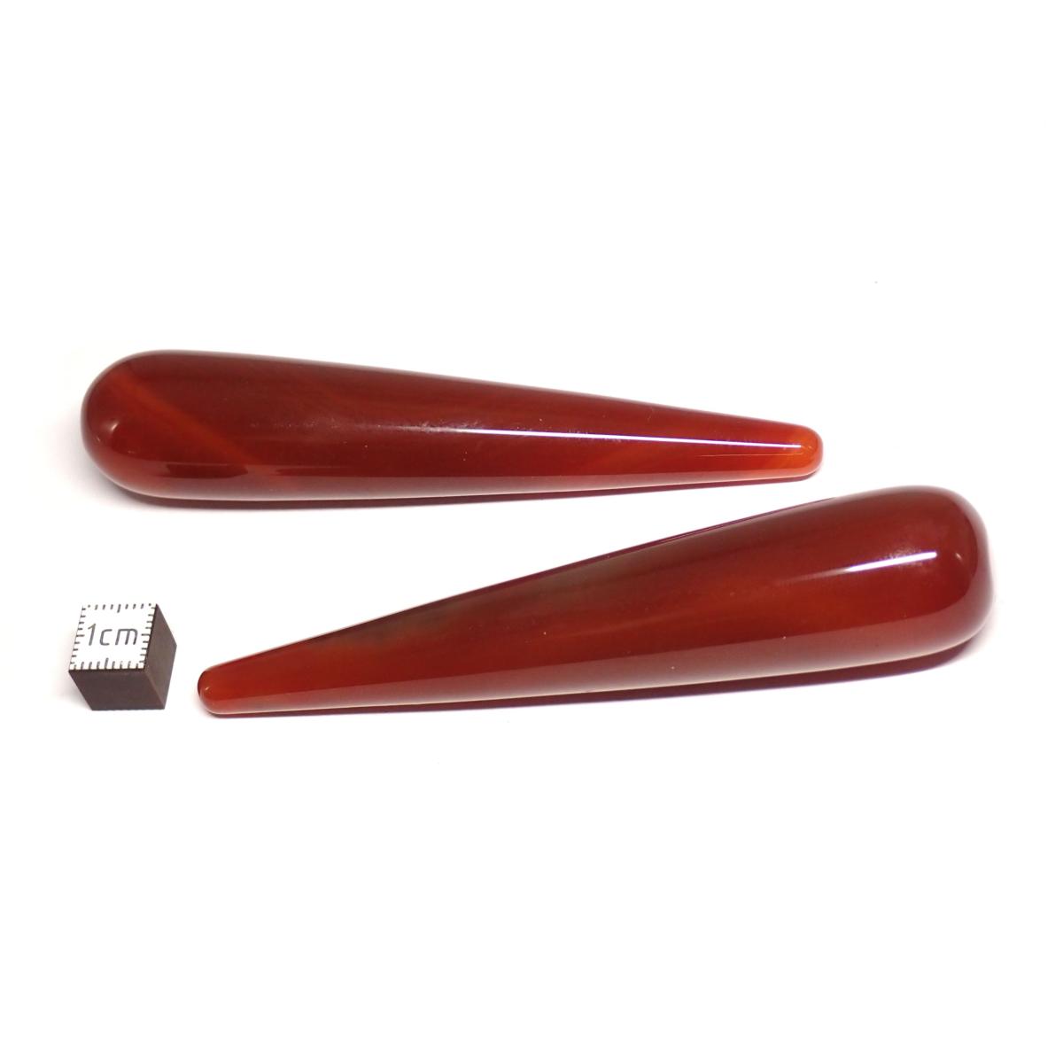 Variété de calcédoine, au même titre que l'agate (groupe du quartz, Si O2). Sa couleur, disposée en bandes concentriques, varie entre l'orange clair et le rouge brique. Pierre de base du 2ème chakra sous le nombril, elle rend plus endurant, plus joyeux, plus solide , elle peut être portée près du cœur pour toute ces qualités.