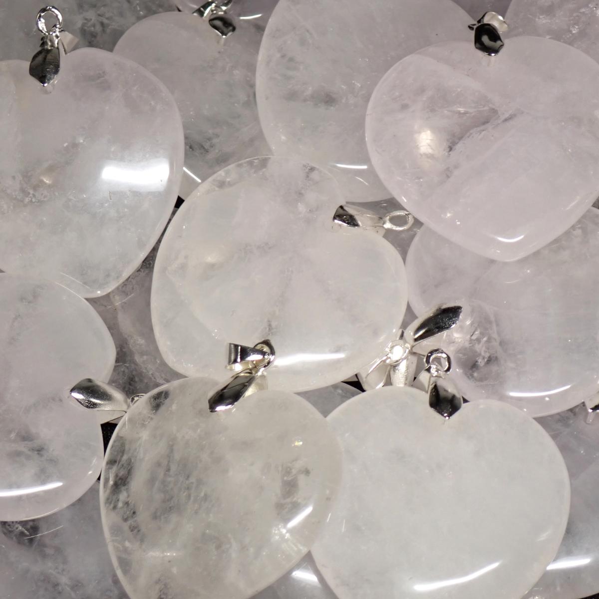 Cristal de Roche pendentif coeur de 4 cm env. par 10 pièces