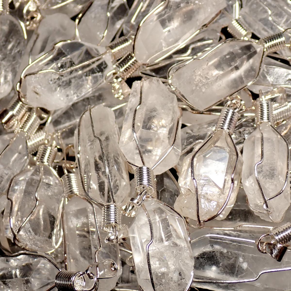 • Cristal de Roche - Pendentif pierre brute cage (Lot de 10 pièces)