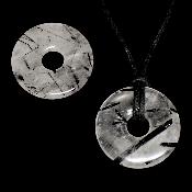 Cristal de roche avec inclusions de Tourmaline - Donut 3 cm Ø (Lot de 10 pièces)