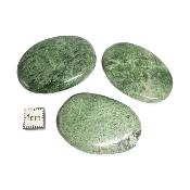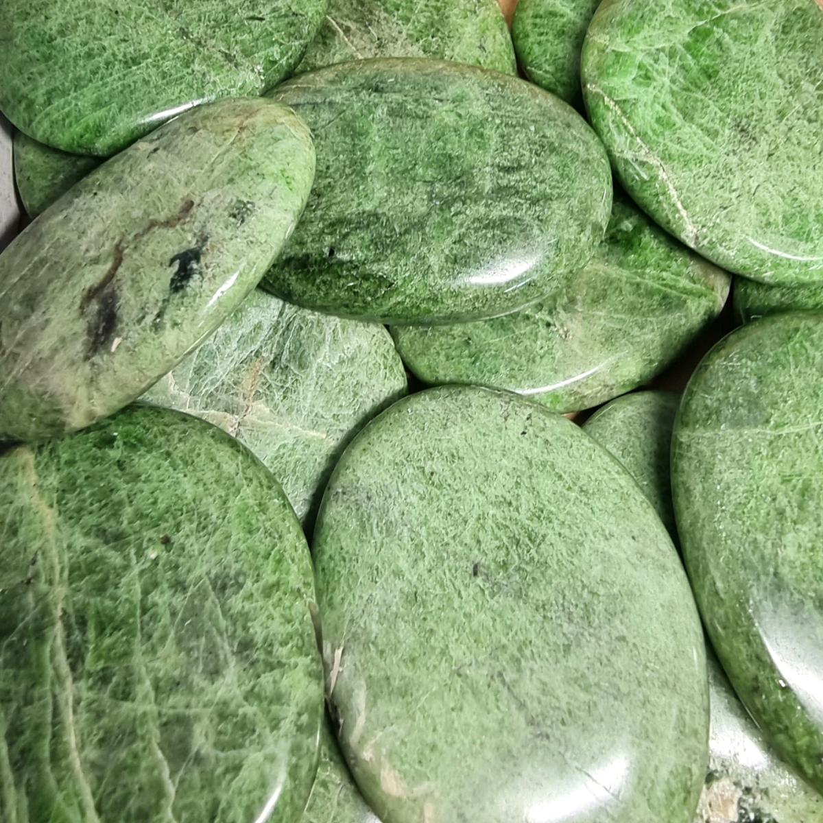 Silicate de calcium et de magnésium, de la famille des pyroxènes (Ca Mg Si2 O6). Action apaisante du chakra du cœur. Sur le plan psychique elle apporte du réconfort. Elle est conseillée pour nous accompagner dans la peine et pour guérir les chagrins d'amour.