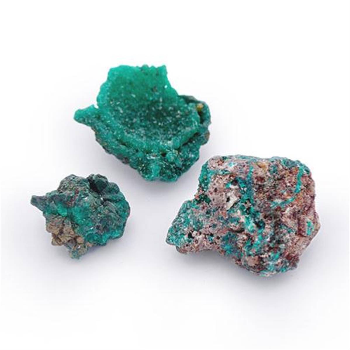 Silicate hydraté de cuivre. Appelée également Émeraude du cuivre. Stimule le cœur spirituel et sa liaison à l'âme. Elle apporte la joie de vie.  Elle aiderait aussi à trouver l'âme sœur, la placer la nuit bien emballée pour la protéger sous son oreiller. C'est pierre fragile qui s'écrase facilement sous sa forme brute mais qui est plus solide sous sa forme cristallisée.