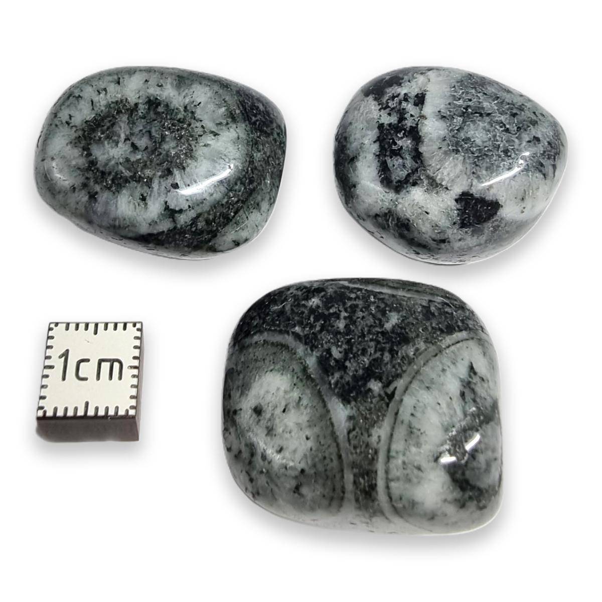 Diorite Orbiculaire pierre roulée vendu par sachet de 100 gramme. Vous y trouverez ENVIRON 4 pièces (+ ou -). Les pierres mesurent 2 à 3 cm ENVIRON.
