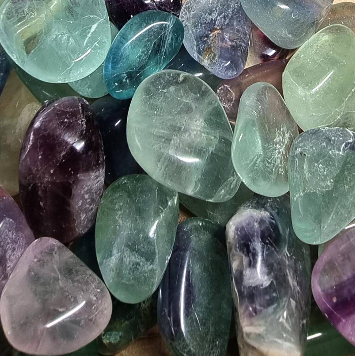 Fluorine Multicolore pierre roulée vendu par sachet de 250 gramme. Vous y trouverez ENVIRON 10 pièces (+ ou -). Les pierres mesurent 2 à 3 cm ENVIRON.