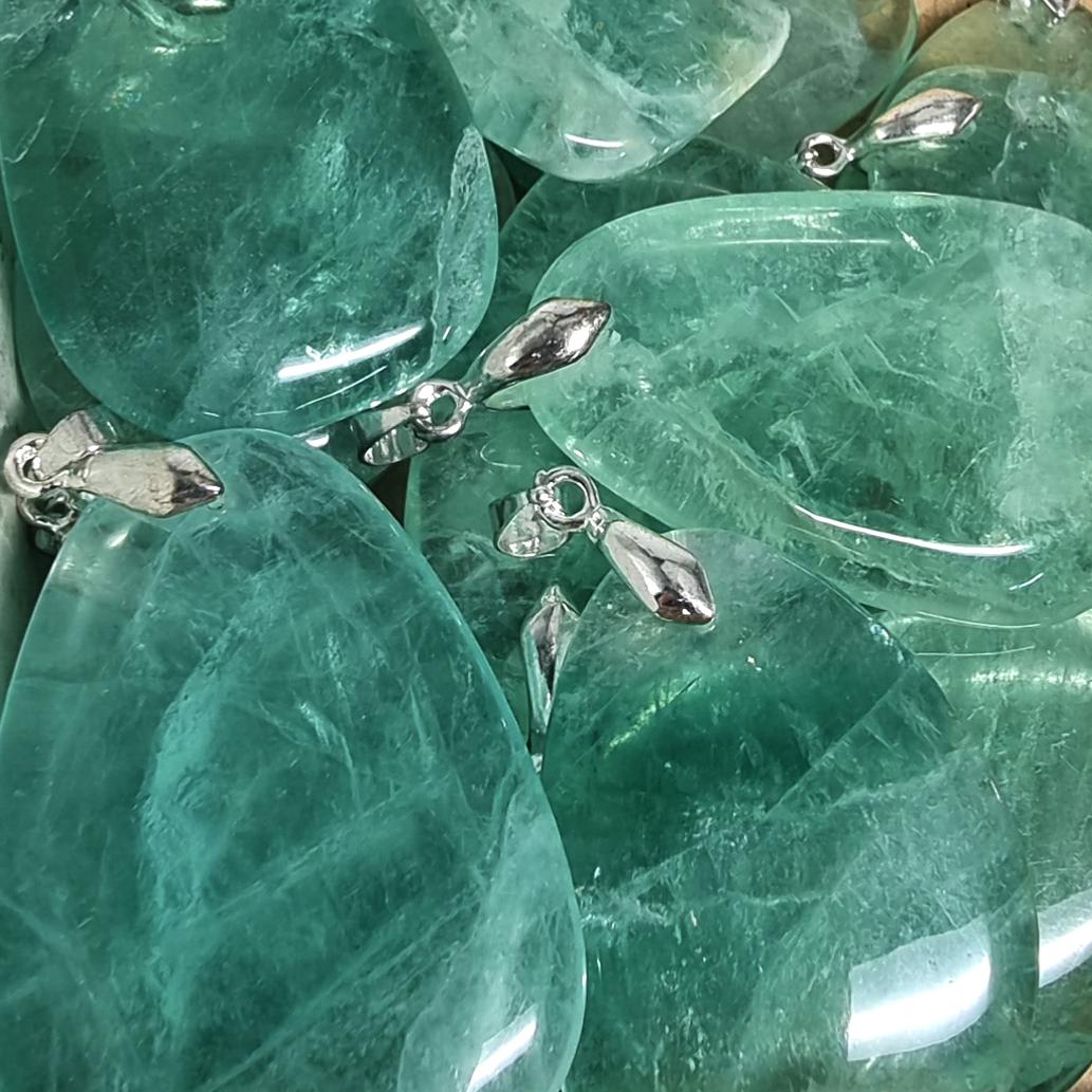 La transparence, la géométrie, la couleur verte de la fluorine apporte une puissante énergie d'amour spirituel, cette énergie circule de l'extérieur du corps jusqu'à la profondeur des os ; elle aide à transformer les résistances intérieures vers plus de douceur, de pardon et d'amour.