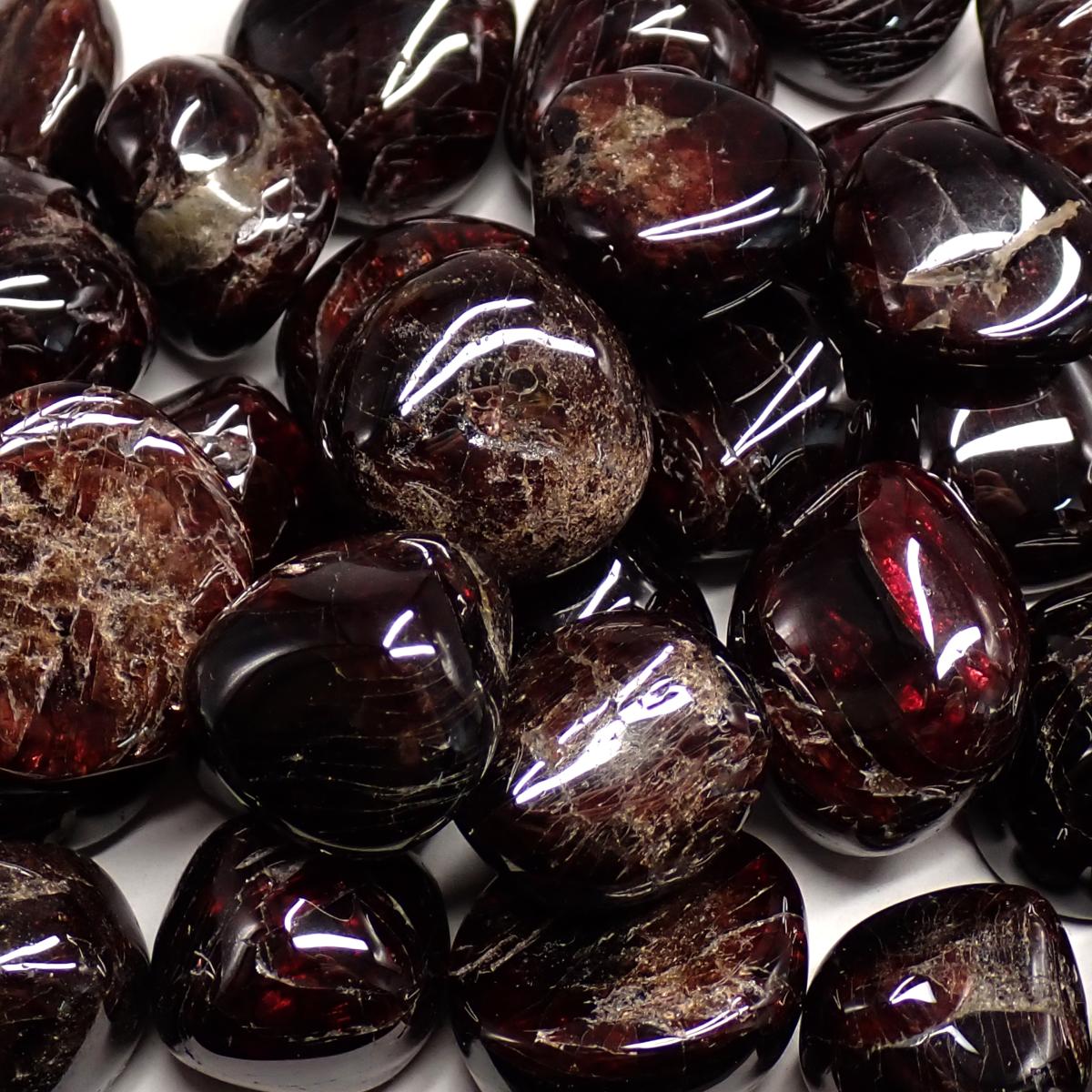 Silicate d'aluminium et de magnésium de couleur rouge intense, en provenance du Brésil.  Symbolise la passion, la force créatrice, le courage et la détermination. L'énergie vivifiante de ce grenat nous réconcilie avec le plaisir et augmente notre force vitale (du grec pyr = feu). Stimulant du chakra racine, il favorise la passion amoureuse.  Il ouvre et recharge les chakras des mains.