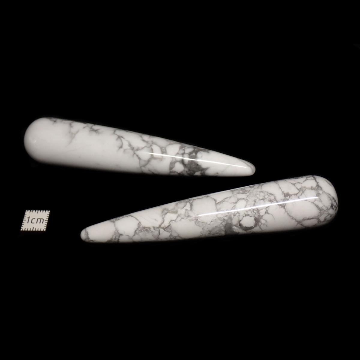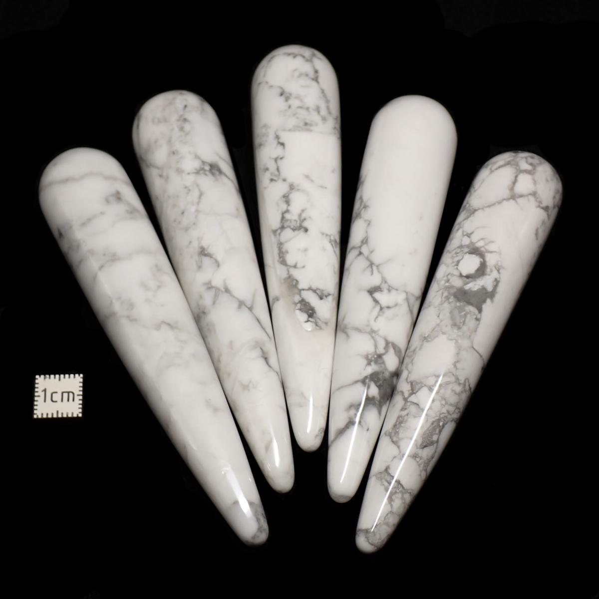 Silicate de calcium et de bore. Pierre de la paix et de la stabilité. En tant que pierre blanche, la Howlite partage avec les autres pierres blanches les énergies de paix de l'esprit et des émotions. La howlite est une pierre qui nous pose, nous calme, elle rend le mental paisible, mais aussi ouvert à la réfléxion, elle est utile pour encourager les enfants à étudier.