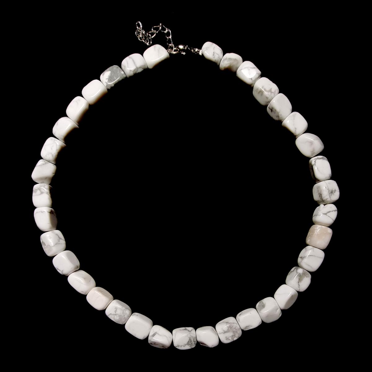 Silicate de calcium et de bore. Pierre de la paix et de la stabilité. En tant que pierre blanche, la Howlite partage avec les autres pierres blanches les énergies de paix de l'esprit et des émotions. La howlite est une pierre qui nous pose, nous calme, elle rend le mental paisible, mais aussi ouvert à la réfléxion, elle est utile pour encourager les enfants à étudier.