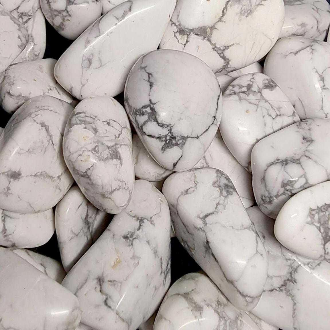 Howlite pierre roulée vendu par sachet de 500 gramme. Vous y trouverez ENVIRON 40 pièces (+ ou -). Les pierres mesurent 2 à 3.5 cm ENVIRON.