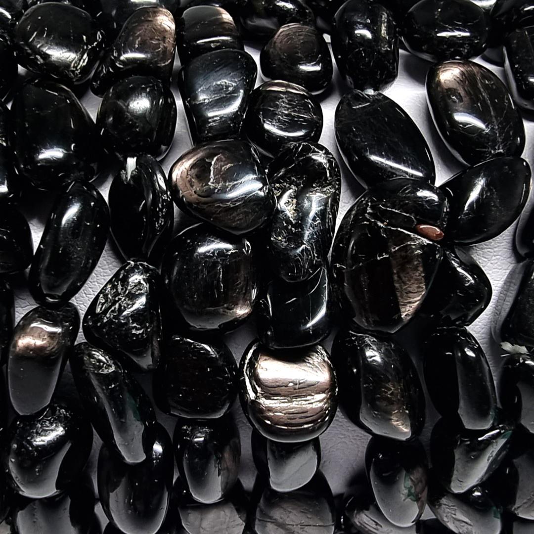 Silicate de fer et de magnésium, de la famille des pyroxènes. Il est formé dans des roches volcaniques en milieu alcalin. Pierre noire très brillante et irisée, elle agit à la fois dans le corps et l'esprit pour relâcher les tensions, drainer l'acidité de la peur ; son action est puissante sur le 3ème chakra, sa droite et le bas de ce chakra.