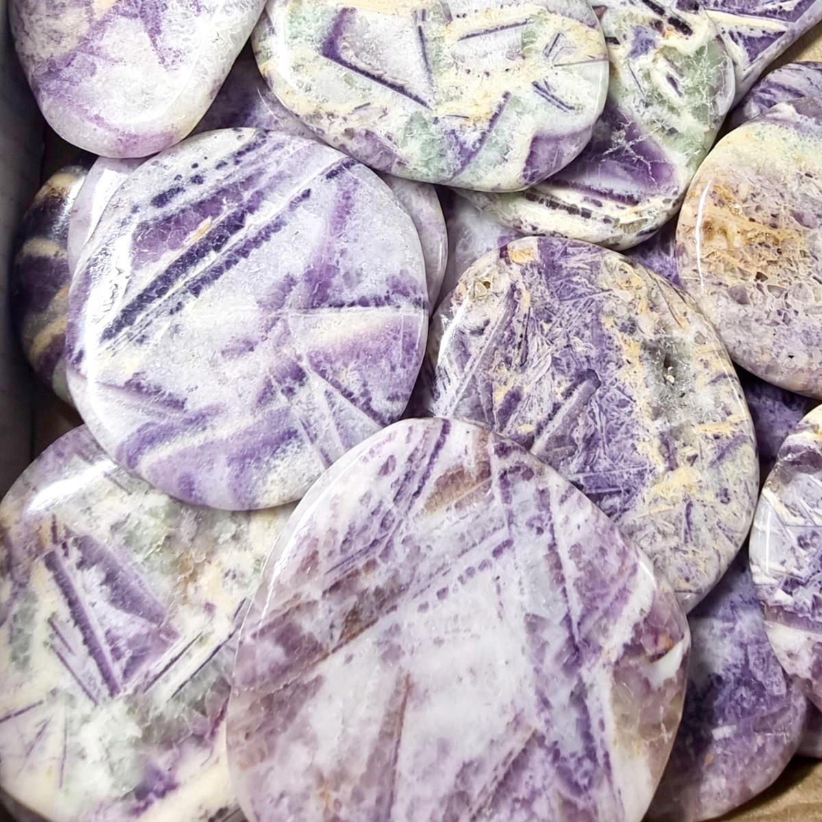 Jaspe avec inclusion de Fluorine mini pierre plate - vente professionnelle / grossiste