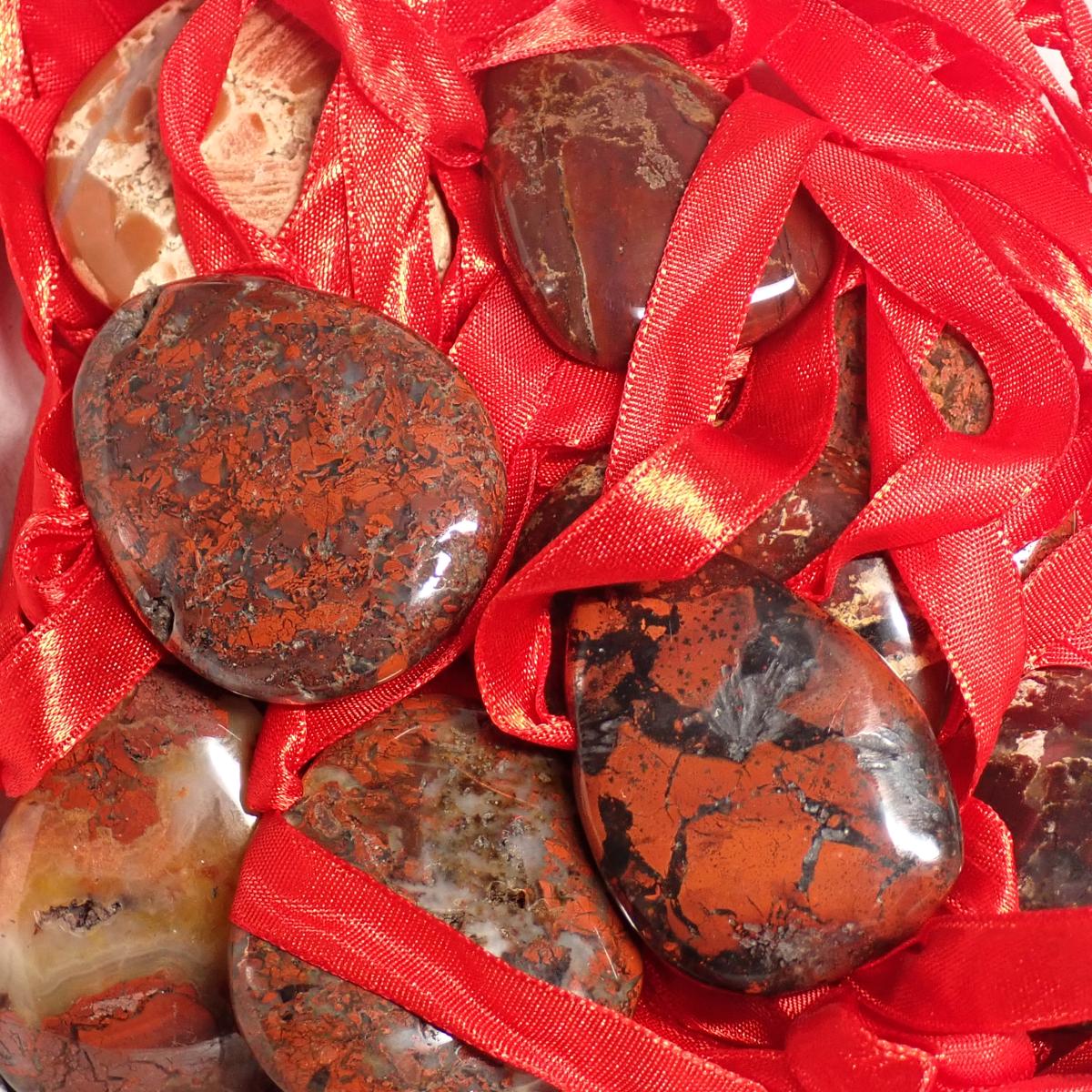 Doit sa couleur rouge à des dépôts d'oxyde ferrique. Aussi bien que le jaspe rouge, le jaspe Breschia stimule en douceur les 3 premiers chakras de base et leurs fonctions associées ; il nous apporte stabilité, développe notre raison pratique et nous aide à garder les pieds sur terre. Pierre d'action, d'initiative.