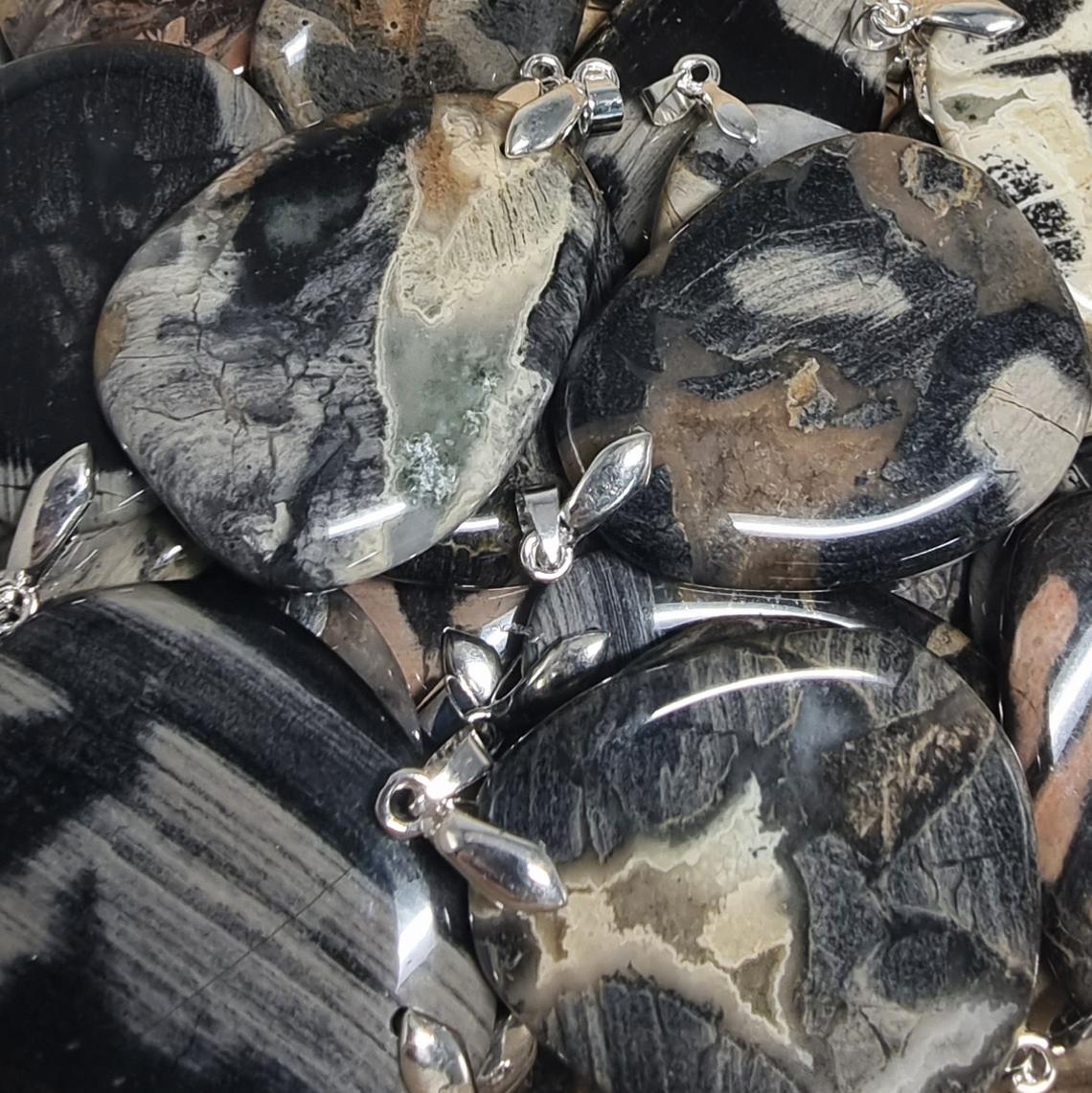 • Jaspe Feuille d'Argent - pendentif mini pierre plate