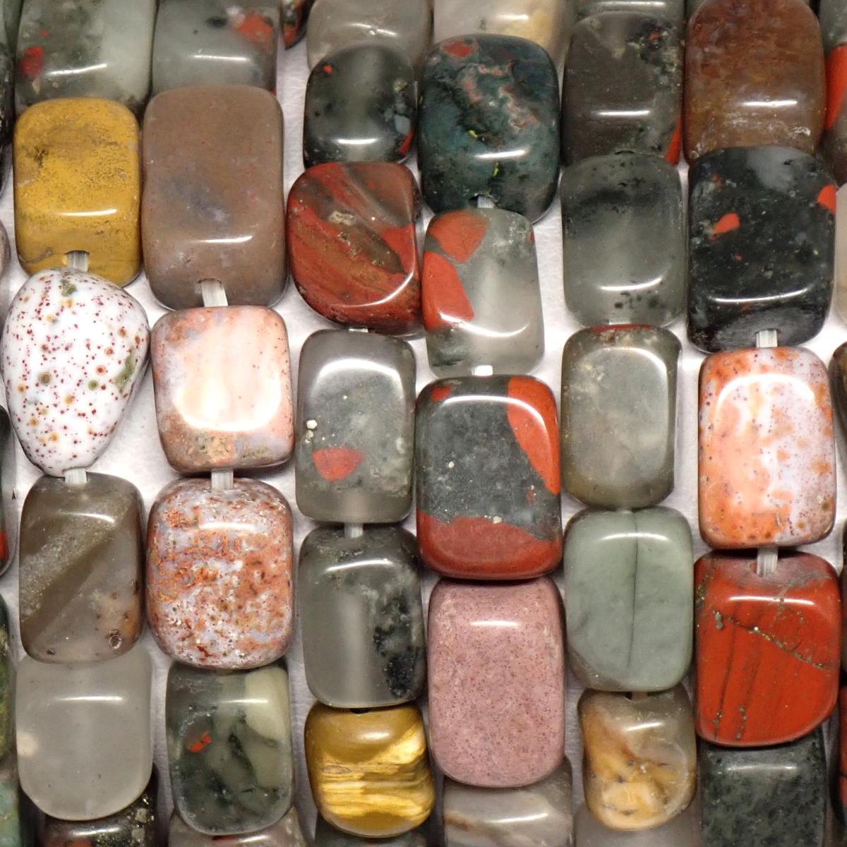 • Jaspe Héliotrope - Bracelets pierres roulées carrées (Lot de 5 pièces)