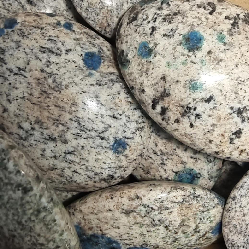 Le jaspe K2 , est une pierre provenant d'un lieu exceptionnel, la montagne himalayenne K2, le deuxième plus haut sommet du monde, composé probablement de jaspe et d'azurite bleue, cette pierre possède une grande force de rectitude, en créant un puissant axe vertical dans le corps , la plupart des gens ressentent la force de son énergie . Elle permet grâce à cet axe de vivre plus dans le présent, de dépasser les blocages habituels de notre personnalité, comme le manque de confiance, la peur ; sa force sur un plan physique est très énergétisante pour notre tonus, notre rectitude, sur le plan psychologique, elle favorise l'assurance et la communication, elle ouvre le cœur en créant une aimante ouverture à l'autre . C'est une grande pierre spirituelle probablement comme la montagne d'où elle provient , elle favorise la méditation et les messages de nos guides . Elle peut être tenue dans les mains, portée dans les poches , placée devant soi en méditation, elle aide comme par la pratique du zen à devenir le vrai nous même et à vivre dans le présent .