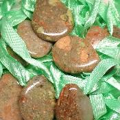 Ses couleurs bigarées et ses dessins en font une pierre aux multiples énergies, tonique, instinctive, elle apporte une sorte de vitalité animale; elle est active sur les 2ème chakra, à n'importe quel endroit du ventre et sur le 3ème chakra.