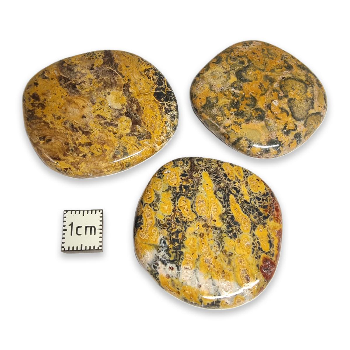 Ses couleurs bigarées et ses dessins en font une pierre aux multiples énergies, tonique, instinctive, elle apporte une sorte de vitalité animale; elle est active sur les 2ème chakra, à n'importe quel endroit du ventre et sur le 3ème chakra.