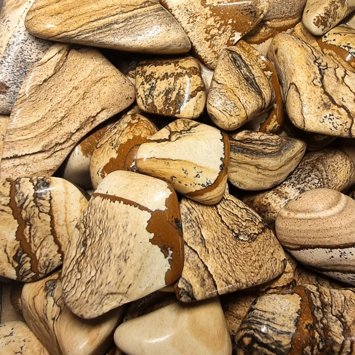 Cette belle variété de jaspe, dans des tonalités brunes, est un bon support de méditation. Elle nous invite à la contempler, à nous perdre dans ses paysages désertiques, à nous libérer de nos souffrances intérieures. Elle est associée aux paysages des montagnes, à la paix, au repos. C'est une pierre d'enracinement, d'incarnation comme une montagne, qui nous rend solide comme le roc, qui calme le mental et aide à soulager la vie stressante.