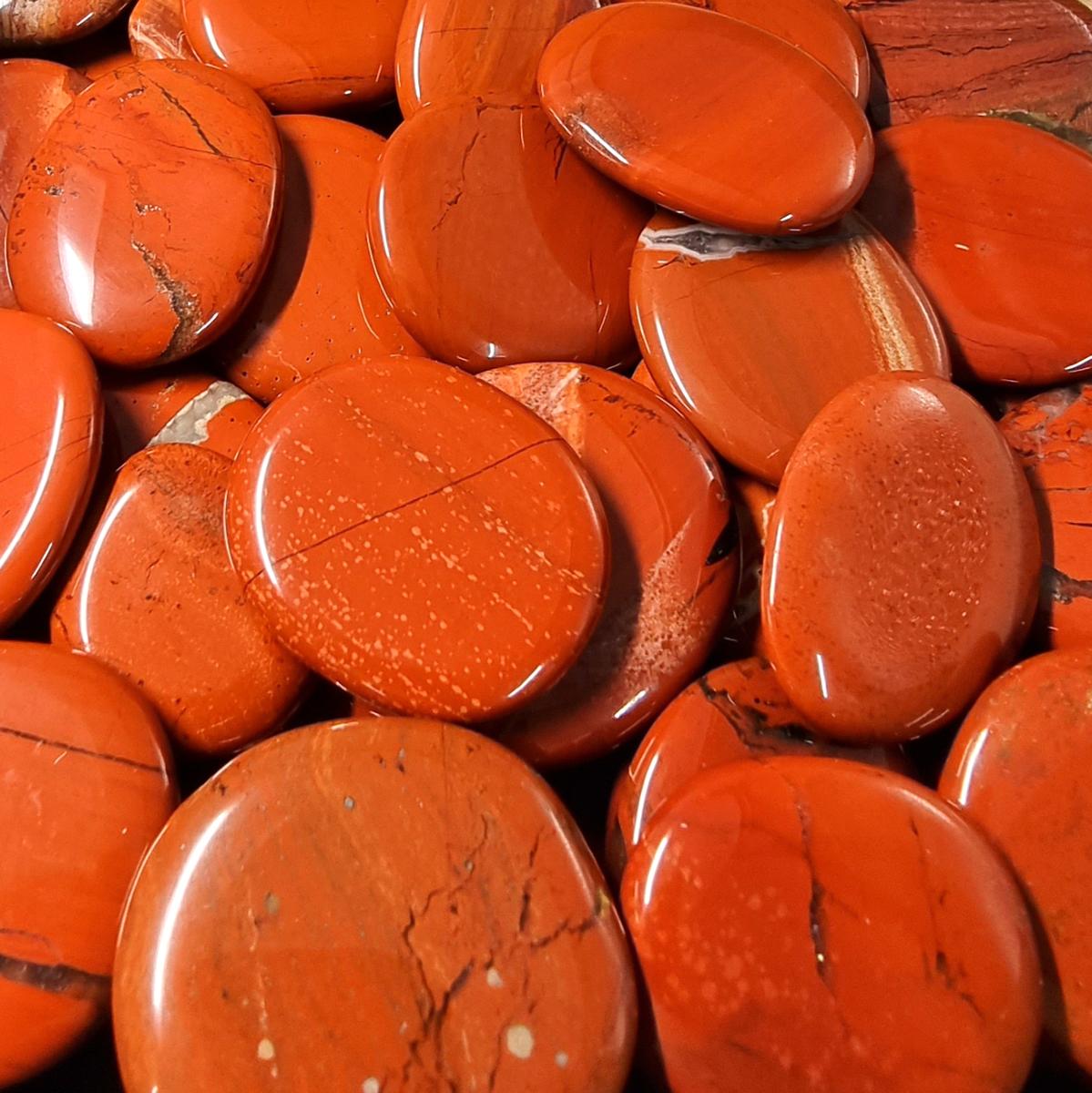 Doit sa couleur à des dépôts d'oxyde ferrique. Le jaspe rouge, symbole de la renaissance, est une pierre d'action et d'initiative, idéale pour ceux qui concrétisent un projet. Il dynamise en douceur le chakra racine et sacré en leur apportant une nouvelle jeunesse. Sur le plan psychique, il nous réconforte dans les situations difficiles. Pierre d'ancrage.