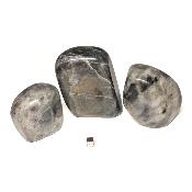 Feldspath (aluminosilicate de calcium). Pierre joliement colorée, très agréable, elle agit comme une douche lumineuse destressante, elle fonctionne comme un bouclier qui transforme les énergies négatives, les maux et les charges d'autrui et qui préserve notre énergie de ceux qui pourraient nous la "pomper". Avant de pratiquer un soin placer un galet de labradorite dans chaque main pour ouvrir et charger les chakras des mains. Nettoyage fréquent indispensable.