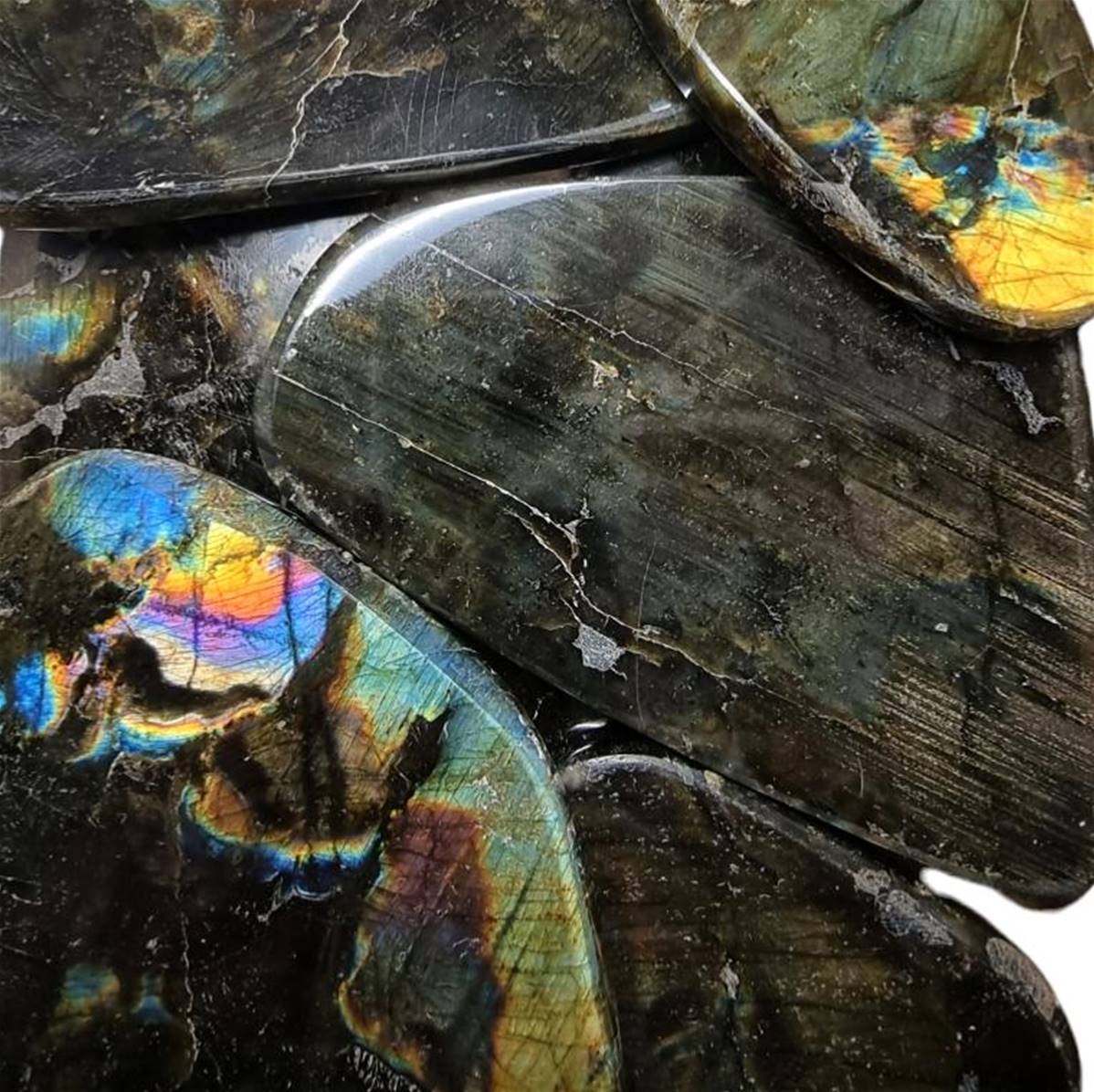 Labradorite  plaque par boite de 2 kg (bord polie choix n°1), par boite de 2 kg (bord brut choix n°2)