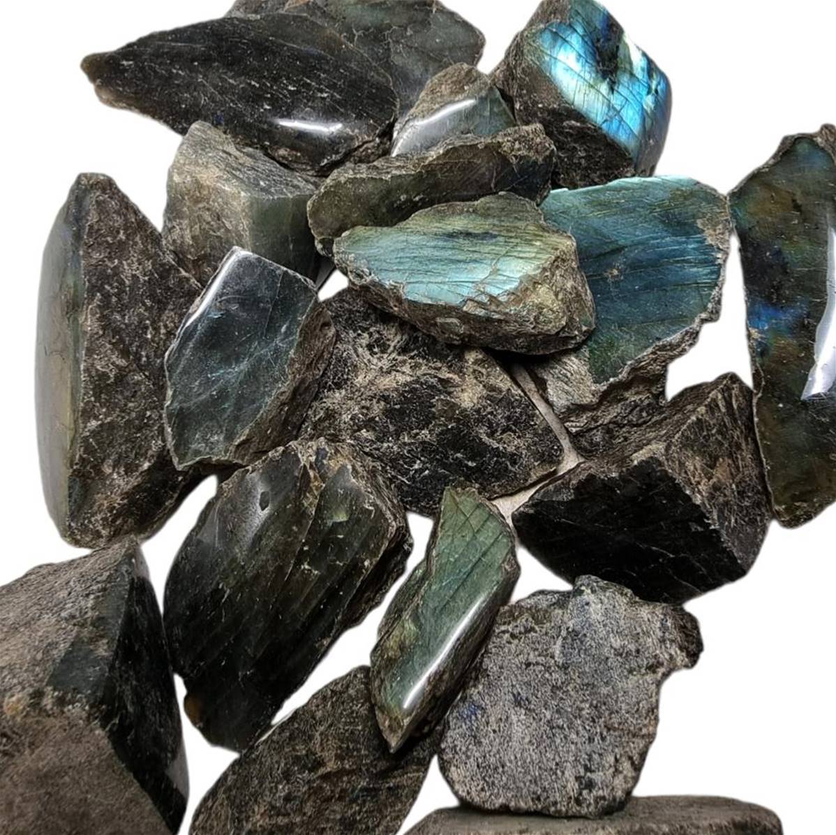 Feldspath (aluminosilicate de calcium). Ce minéral renforce le corps éthérique : il fonctionne comme un bouclier qui absorbe les énergies négatives, les maux et les charges d'autrui et qui préserve notre énergie de ceux qui pourraient nous "pomper". Avant de pratiquer un soin il convient de porter un galet de labradorite dans chaque main pour ouvrir et charger les chakras des mains. Nettoyage fréquent indispensable.