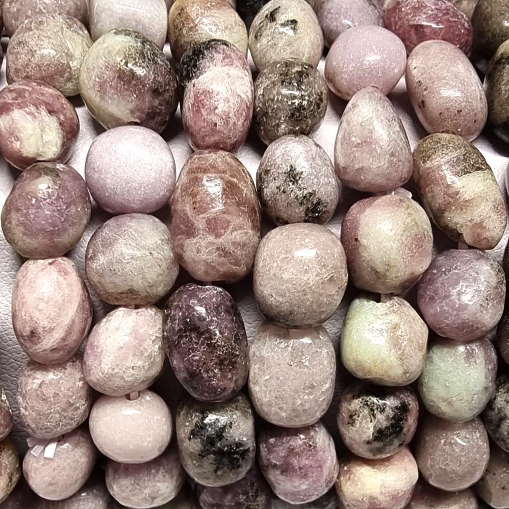 Variété de muscovite, claire ou foncée, pailletée de particules de mica. La lépidolite est un aluminosilicate complexe d'aluminium, lithium et potassium. Les micas sont de très bons isolants thermiques et électriques. Sur le plan énergétique ce minéral est traditionnellement utilisé pour nous aider à gérer nos émotions face au stress du quotidien. Effet calmant. La lépidolite nous apporte bien-être et sérénité. Il travaille sur les plans de conscience élevés. Par sa teneur en lithium, il est particulièrement conseillé pour soulager les états de peur et d'effondrement psychologique ; associé à d'autres pierres, l'énergie de celles-ci pourra voyager vers les nerfs .