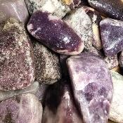 Variété de muscovite, claire ou foncée, pailletée de particules de mica. La lépidolite est un aluminosilicate complexe d'aluminium, lithium et potassium. Les micas sont de très bons isolants thermiques et électriques. Sur le plan énergétique ce minéral est traditionnellement utilisé pour nous aider à gérer nos émotions face au stress du quotidien. Effet calmant. La lépidolite nous apporte bien-être et sérénité. Il travaille sur les plans de conscience élevés. Par sa teneur en lithium, il est particulièrement conseillé pour soulager les états de peur et d'effondrement psychologique ; associé à d'autres pierres, l'énergie de celles-ci pourra voyager vers les nerfs .