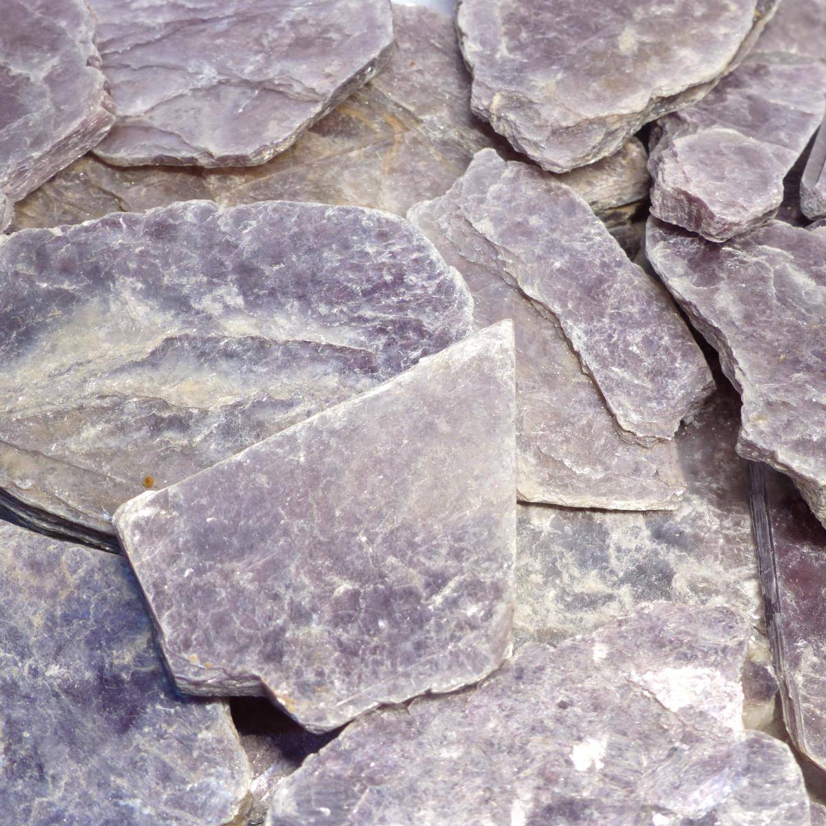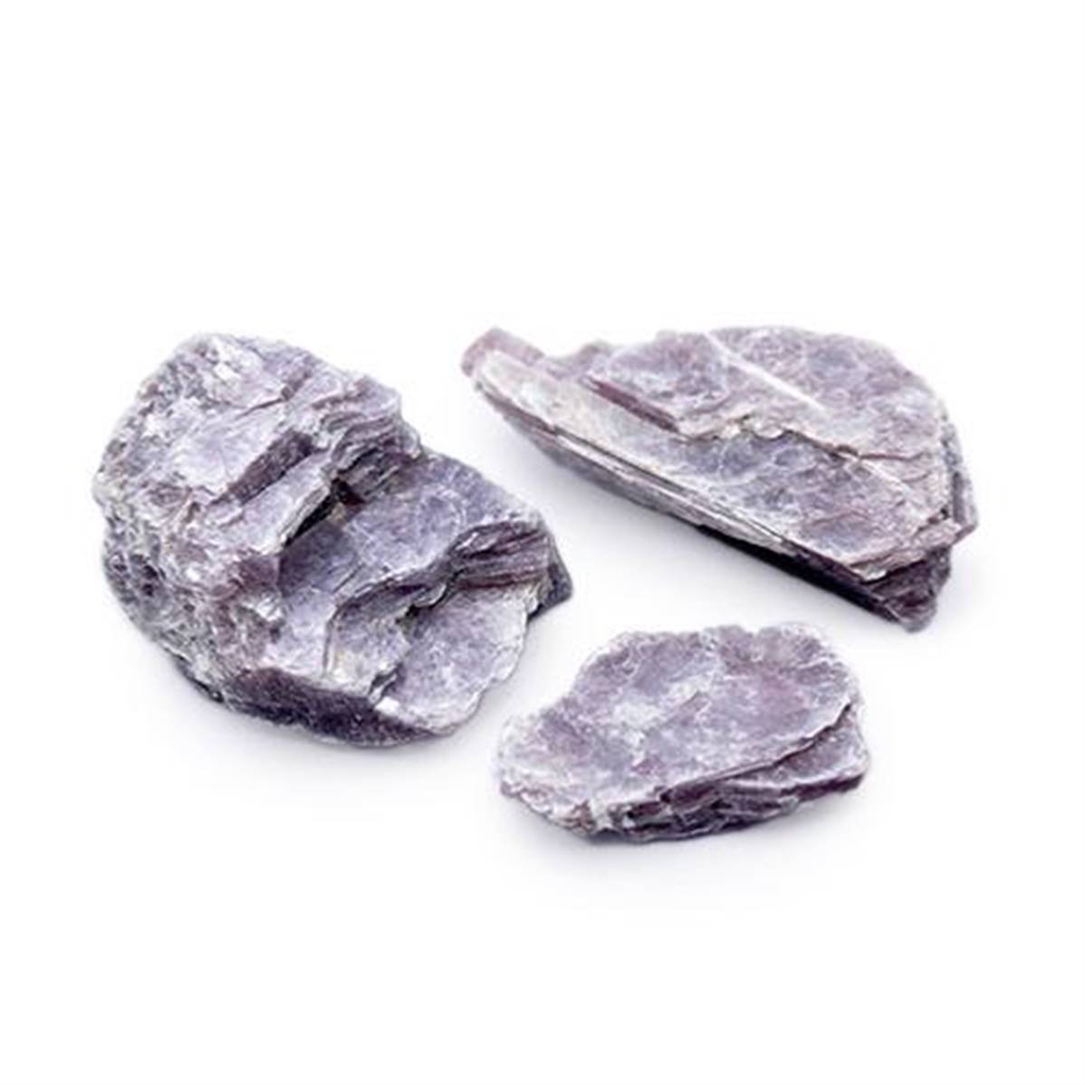 Variété de muscovite, claire ou foncée, pailletée de particules de mica. La lépidolite est un aluminosilicate complexe d'aluminium, lithium et potassium. Les micas sont de très bons isolants thermiques et électriques. Sur le plan énergétique ce minéral est traditionnellement utilisé pour nous aider à gérer nos émotions face au stress du quotidien. Effet calmant. La lépidolite nous apporte bien-être et sérénité. Il travaille sur les plans de conscience élevés. Par sa teneur en lithium, il est particulièrement conseillé pour soulager les états de peur et d'effondrement psychologique ; associé à d'autres pierres, l'énergie de celles-ci pourra voyager vers les nerfs .