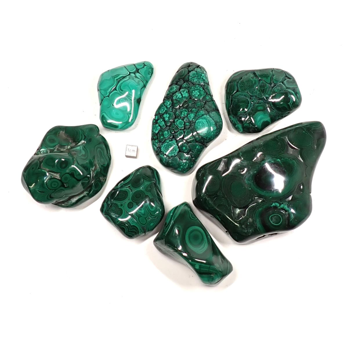 Malachite - Forme libre (morceau polie) n°01 ( Lot de 7 pièces )