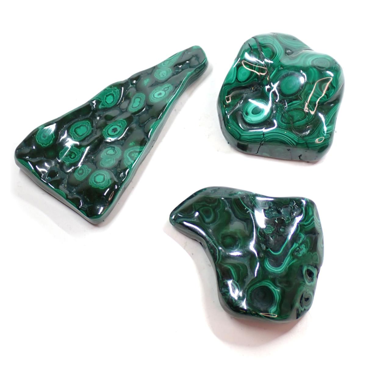 Malachite - Forme libre (morceau polie) n°03 ( Lot de 3 pièces )