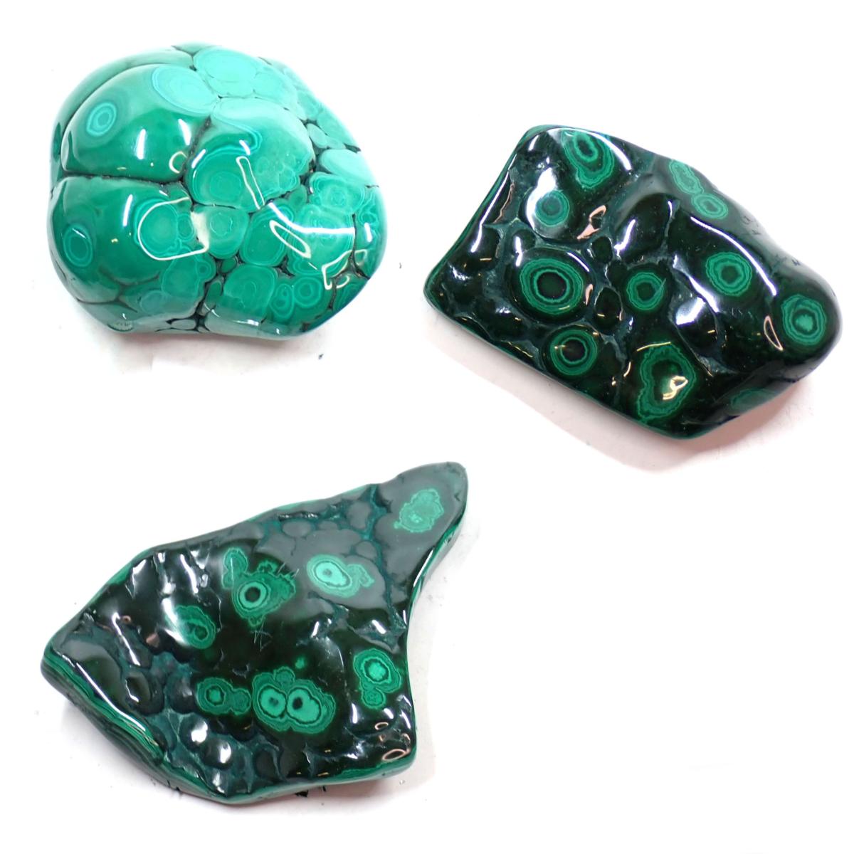 • Malachite - Forme libre (morceau polie) n°04 ( Lot de 3 pièces )