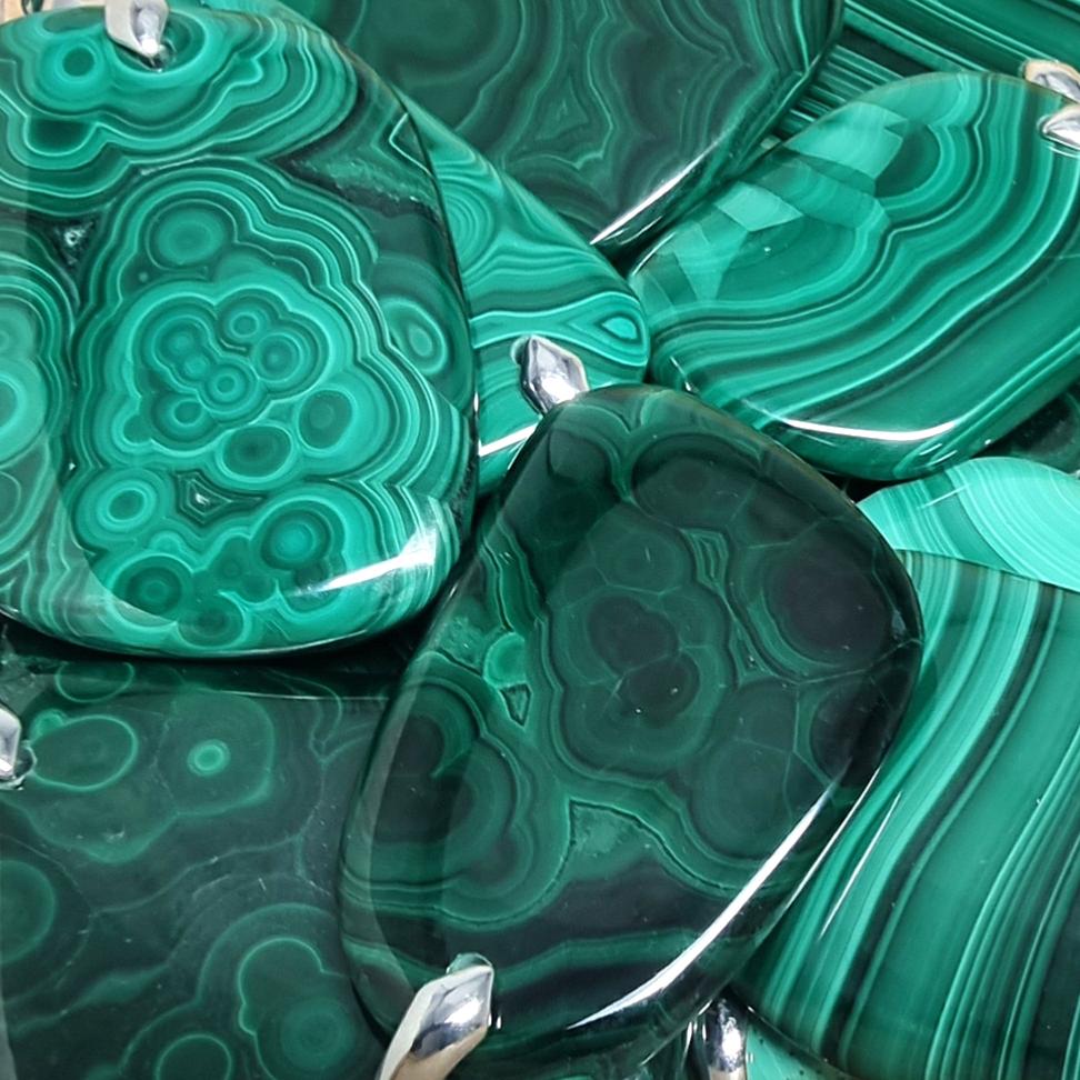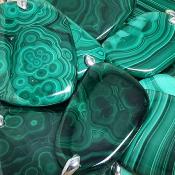 Carbonate basique de cuivre. Puissante, dense et opaque, elle absorbe l'énergie négative ; elle peut être appliquée sur les endroits du corps remplis d'énergie négative , elle active et fait tourner le chakra du cœur . sur le plexus solaire, elle évacue les tensions du diaphragme. Nettoyer fréquemment.