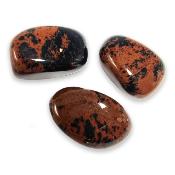 Cette variété brune rouge, aussi appelée Mahogany, est moins protectrice que la noire, plus axée sur le magnétisme, la vitalité, spontanéité, l'animalité ; c'est une pierre d'instinct qui développe notre bonne relation avec les énergies de la terre, elle nous aide aussi à repartir sur un bonne base.